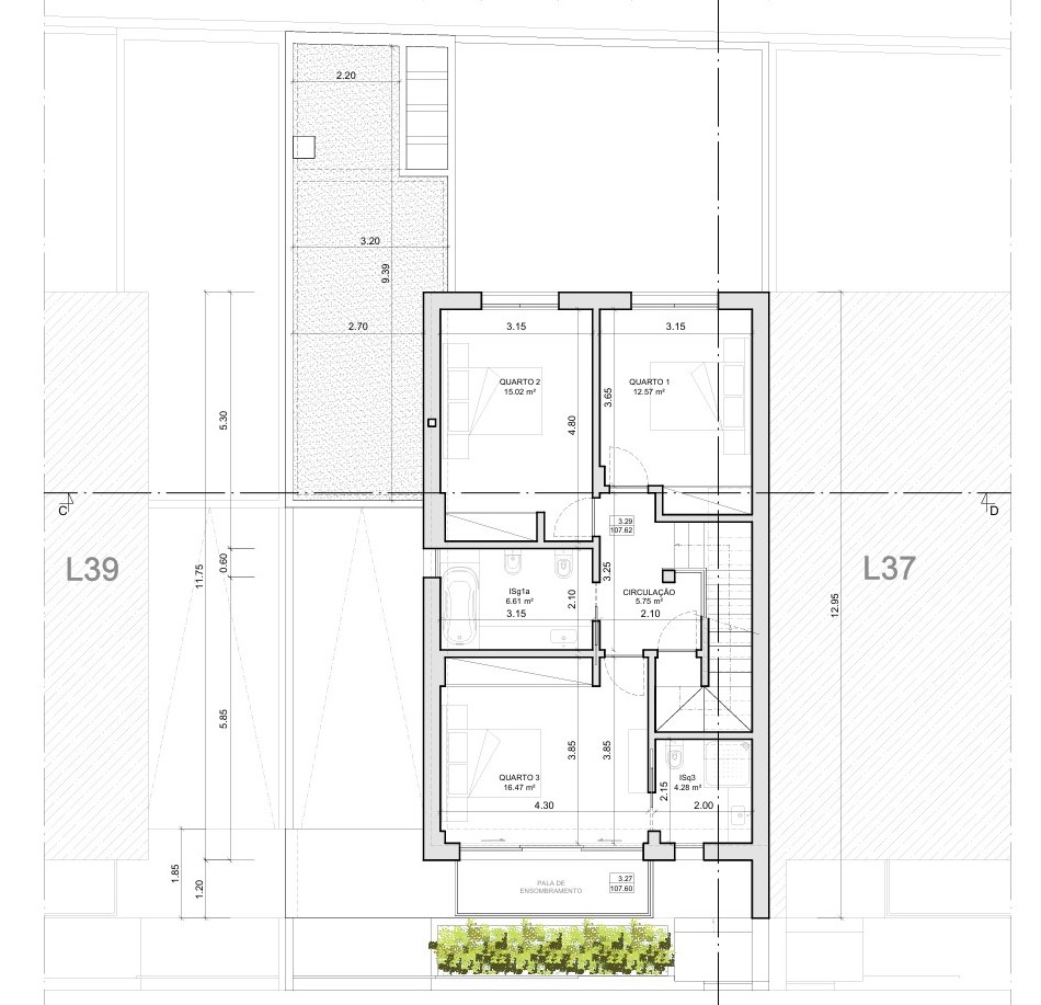220 m² de construção | Terreno 197 m² | 3 pisos | Sótão com arrumos e terraço.